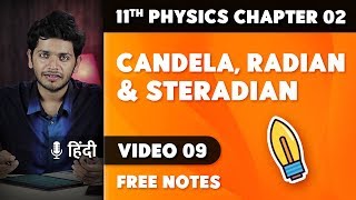 What is luminous intensity? Candela, radian, and steradian explained. Solid angle and plane angle explained. This video is part of the first-ever physics series by Vikrant Kirar which can be found at https://bit.ly/crashup-old For the latest complete courses and FREE colourful PDFs, visit crashup.in Corrections found by super students: 4:33 pie is an irrational number (Anchal Chauhan, Hajipur, Bihar) NCERT Physics class 11 chapter 2 Units and Measurement 2.2 The International System of Units 📙 Chapter notes: http://bit.ly/CrashUp11PH03 📚 Chapter-wise Playlists with all notes: https://www.bit.ly/crashupnow 🚀 Telegram Group: https://www.t.me/crashup 😍 My Instagram: https://www.instagram.com/vikrantkirar 🎥 CrashUp Behind the Scenes: https://www.instagram.com/crashupnow 🍉 Tiktok: https://www.tiktok.com/@crashupnow 😇 Help me by donating UPI ID crashup@upi (preferred) Paytm link https://p-y.tm/jEX-3Ih https://www.patreon.com/crashup https://www.paypal.me/crashupnow #IITJEE #NEET #Physics 📪 Collaborate: crashup.in@gmail.com ❤️ Made with love by www.wirepaper.in